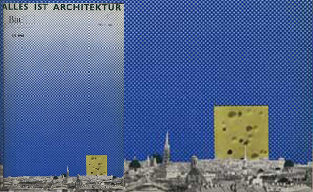 Los fragmentos de la imagen que ilustra el post se corresponden a la portada de la revista BAU, nº 1-2 de 1968 donde Hans Hollein publicó el famoso manifiesto ALLES IST ARCHITEKTURE