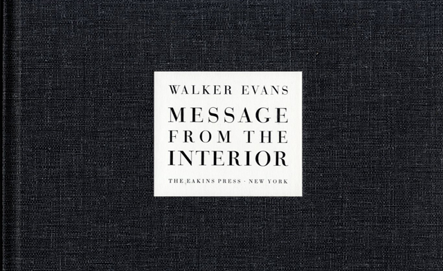 *En la imagen: Portada del libro Message From The Interior ed. Eakins Press, 1966. Primera edición de 12 grabados del fotógrafo Walker Evans, (St. Louis 1903, New Haven 1975), retratista por excelencia de la gran depresión americana de los años 30.