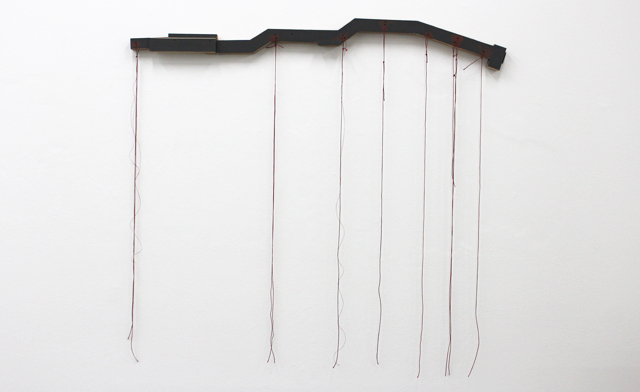 En la imagen una de las piezas de Sergi Aguilar expuesta en la galería Estrany & De la Mota de la obra Al-Gir. Se trata, según Angela Molina, de la alegoría de un paisaje donde todos los fragmentos metonímicos mantienen en suspenso la escultura. Antes de entrar, se nos invita a leer en la hoja de mano la siguiente cita del arquitecto austríaco Adolf Loos: Si nos encontramos ante un montículo de dos por un metro de forma más o menos piramidal, podríamos llegar a pensar que esa loma en el paisaje es, en realidad, el túmulo de un enterramiento y que eso sería ya, en sí mismo, arquitectura. Creo que la naturaleza muestra y oculta lo sublime y lo cruel, que a la vez que nos revela toda su plenitud también la esconde.