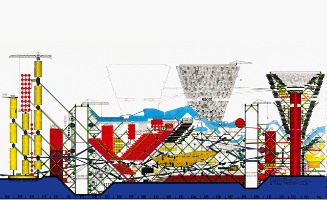 En la imagen un fragmento de la Plug-in City de Archigram de 1964