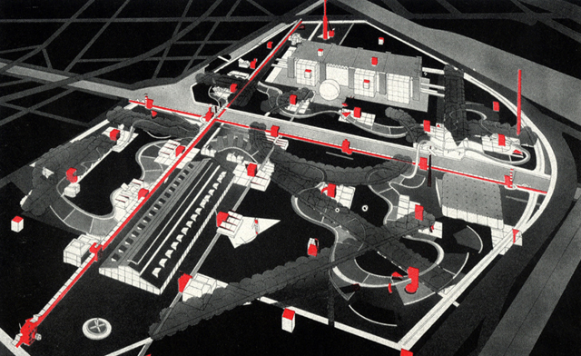 En la imagen una de las conocidas perspectivas del Bernard Tschumi del Parc de la Villete. Más información en http://nickkahler.tumblr.com/post/5968140490