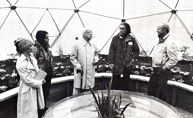 En la imagen del post se pueden ver a Nancy Jack Todd, Liz Fial, Buckminsterfuller, Jay Baldwin y John Todd en el New Alchemy Institute, en 1982. Más información en http://12degreesoffreedom.blogspot.com.es/2008/05/comprehensive-design-for-carbon-neutral.html