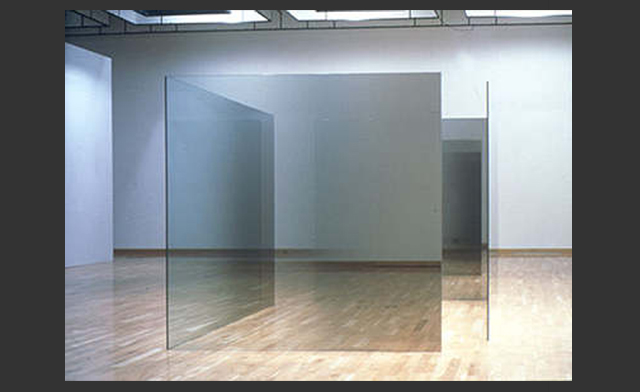 En la imagen la obra de Larry Bell, 6x6x4-A,B, de 1995, compuesto por cuatro paneles de vidrio de 12mm con una película de cromo-niquel. Más información en http://www.larrybell.com