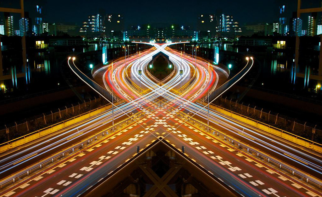 La imagen del post es del fotógrafo japonés Shinichi Higashi de la serie Graffiti of Speed/Mirror of Symmetry. Más información en: https://www.flickr.com/photos/sinkdd/sets/72157630853464244/