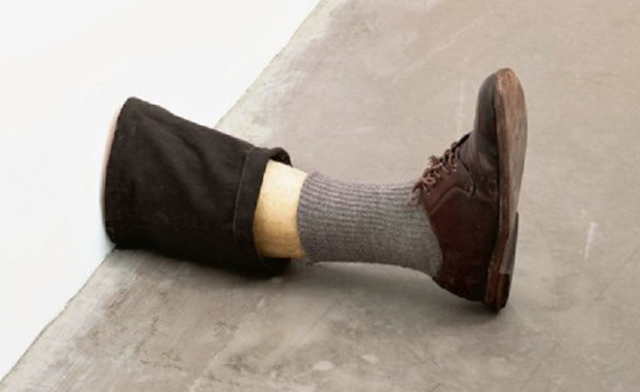 En la imagen una pieza de Robert Gober, Untitled (Leg), 1989-90, perteneciente a la retrospectiva The Heart is not a Metaphor, realizada en 2014 en el MOMA de Nueva York. Anteriormente se realizo una retrospectiva en el Reina Sofía en 1992 comisariada por Catherine David que comentaba: Robert Gober destaca por la reivindicación de una subjetividad radical en un momento en el que las manifestaciones artísticas, en su mayoría, destilan las estrategias del pensamiento moderno o posmoderno sobre problemas formales o teóricos. Su obra, además de contener fuertes resonancias autobiográficas, privilegia la emoción frente al concepto. Su discurso artístico es crítico, sin adscribirse por ello, a la producción simulacionista neoyorquina llamada <<crítica>> sino que invita a una nueva lectura del arte, a reconsiderar el rechazo del formalismo.