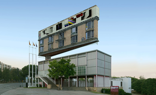 En la imagen una fotografía de Víctor Enrich Measure de 2015 donde se relaciona el Pabellón de la República de Josep Lluís Sert, reconstruido en Barcelona, con el Storefront for Art and Architecture de Steven Holl de Nueva York. Más información en http://victorenrich.com/post/130542236184/measure