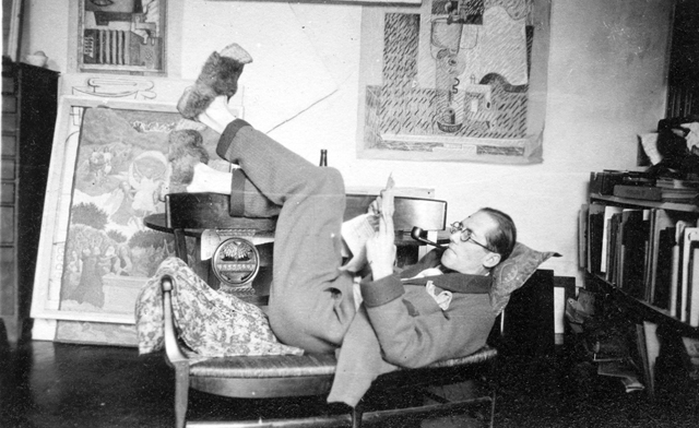 En la imagen, Le Corbusier recostado en su apartamento del numero 20 de la rue Jacob de París
