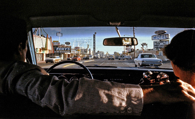 En la imagen, Robert Venturi y Denis Scott Brown circulando en Las Vegas durante el mítico viaje de investigación.