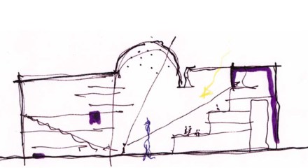 Teorema 006: Section sketch, UCSF Mission Bay Campus Community Center, San Francisco, California, by Ricardo Legorreta, late 90’s
